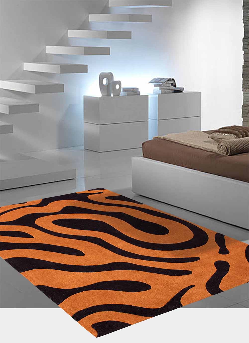 A hand tufted rug is manufactured utilizing a tufting gun with needles mounted in the front. The production process is conducted by operating the machine by hands. The tufted gun employed to create artistic floor pieces shoots soft and lustrous yarns into bhase. Orange New Hand Tufted Carpet The rug is produced on a frame which is laced up with a cotton foundation with the imprint of the design on it. Due to the set mechanism the yarn is shot and pulled back on the surface. This specially designed machine is loaded with all the required equipment; it creates the loop and also makes a cut, as per the demand of the design.